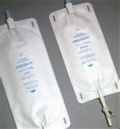 Leg bag used with urinary catheters.